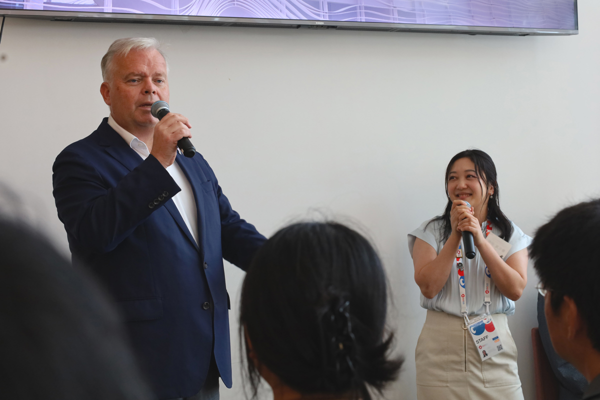 まずは、開会にあたりオランダパビリオン館長のヤン・ポール・クルーセさんから歓迎の挨拶をいただきました。