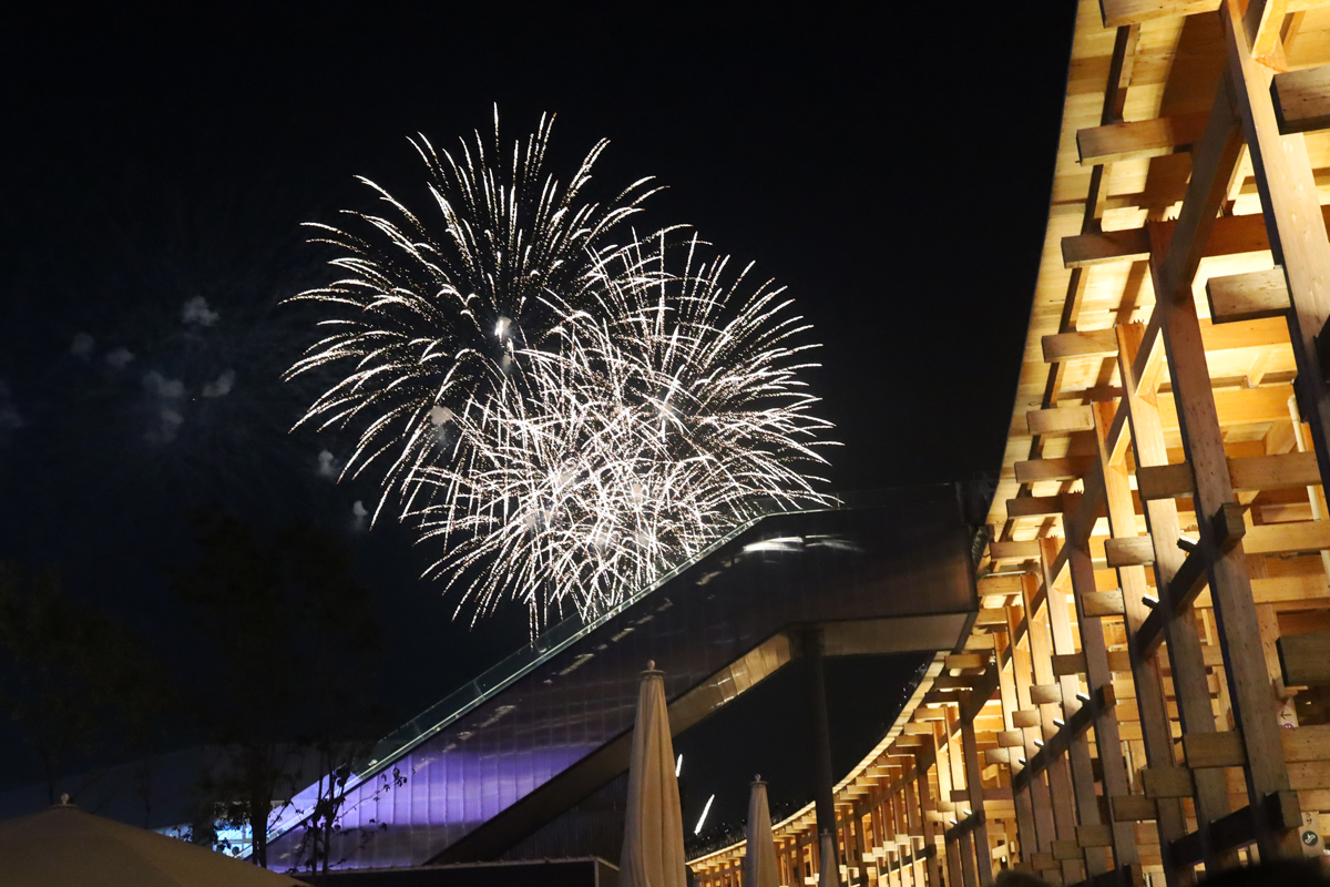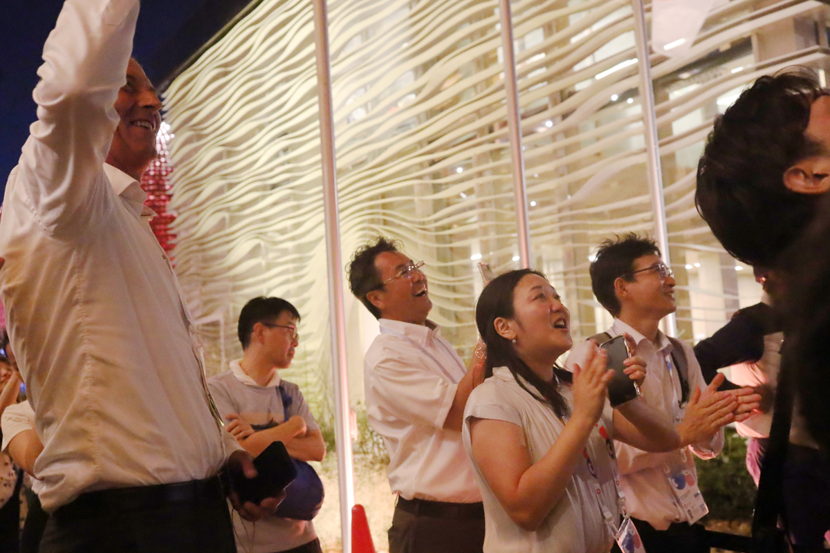 イベントが終了を迎え、外に出ると、万博の打ち上げ花火が夜空に開いていました。オランダの人々と共に見上げたその景色は、完成の喜びと重なり合い、忘れられない締めくくりとなりました。