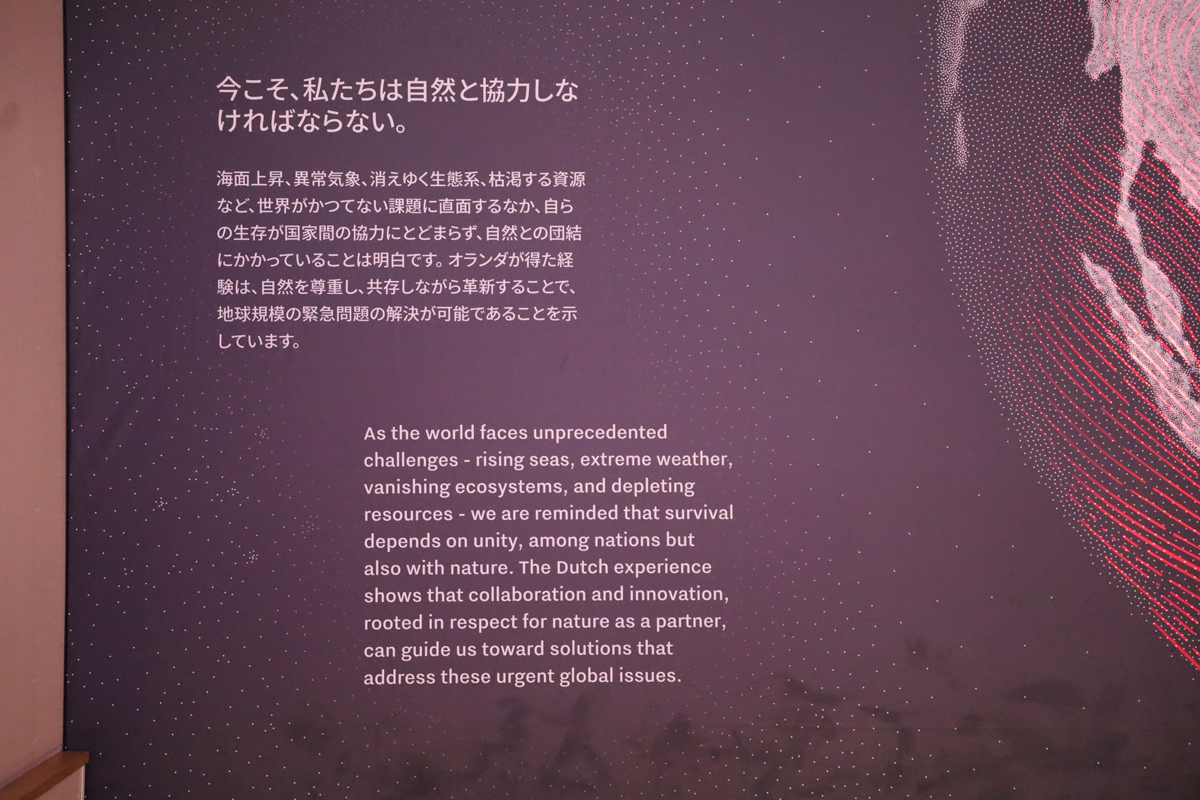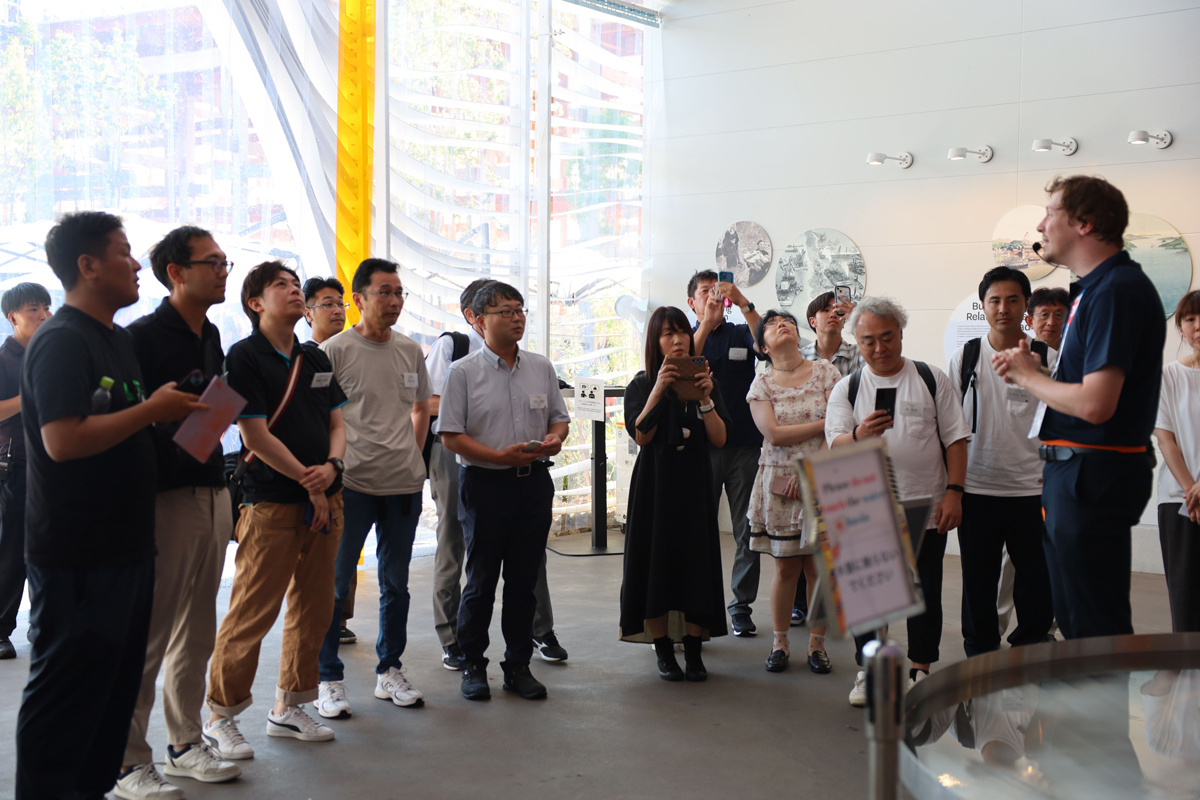 続いてプログラム後半は、お待ちかねのパビリオン内部見学ツアーへ。大阪・関西万博のなかでも人気が高く、予約が難しいと言われるオランダパビリオンですが、今回はイベントに合わせて特別に社内メンバーの見学が実現しました。ここからは写真を中心に、内部の様子をご紹介します。