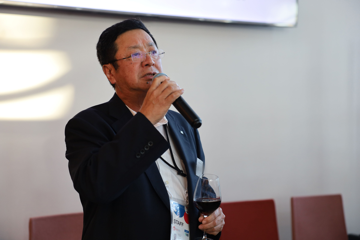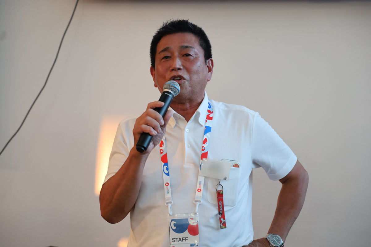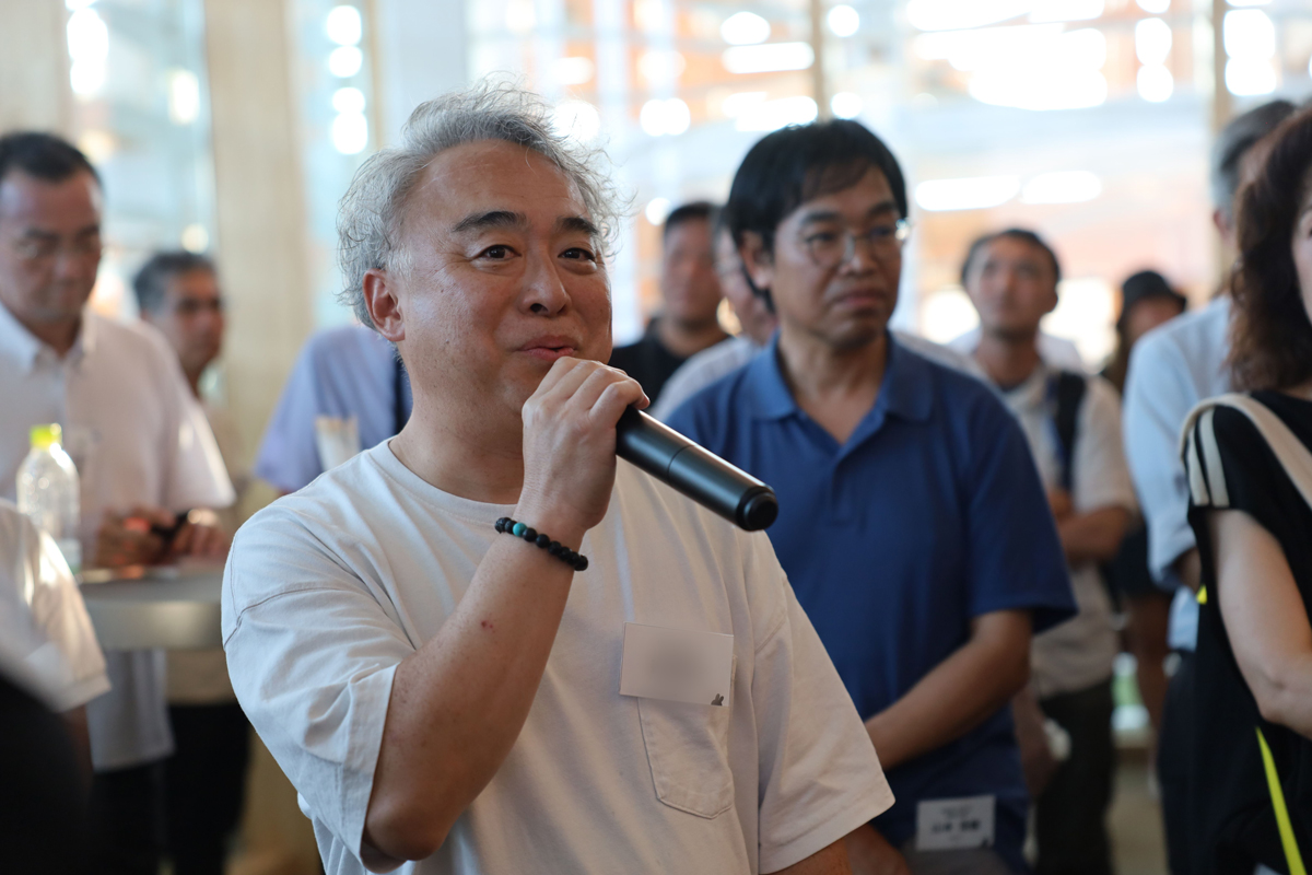 「本日は暑い中ご参加いただきありがとうございます。55年前、1970年の大阪万博では、淺沼組はメディアセンターやカンボジア館、ラオス館などの建設を手掛けました。その歴史もあり、今回も必ず関わりたいと強く願い、ご縁あってオランダパビリオンの建設を担当することになりました。名古屋支店での環境配慮型改修など、私たちの実践をオランダの関係者に高く評価いただいたことが、このパビリオンに結びつきました。会期終了後に移築される設計思想や、土や環境配慮型コンクリートの技術を取り入れた実例は、まさにGOOD CYCLEの理念そのものです。