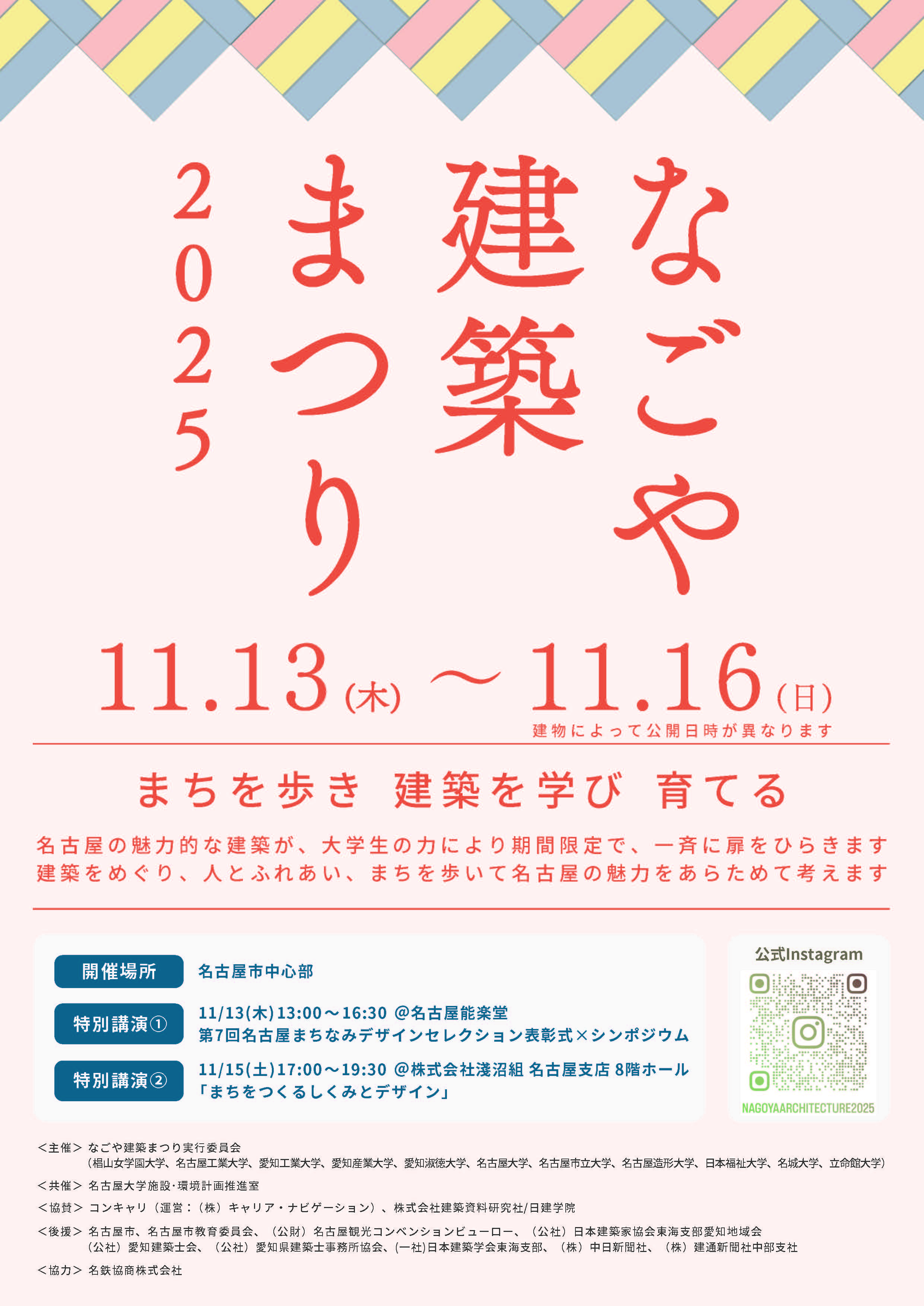 また、まちなみデザイン賞の表彰式と同時期に「なごや建築まつり」が開催され、期間中には多くの来場者が名古屋の建築を巡りました。淺沼組名古屋支店にも見学にお越しいただき、講演会の会場としてご利用いただきました。地域の建築を知る機会のひとつとして、当支店をご活用いただけたことを嬉しく思います。