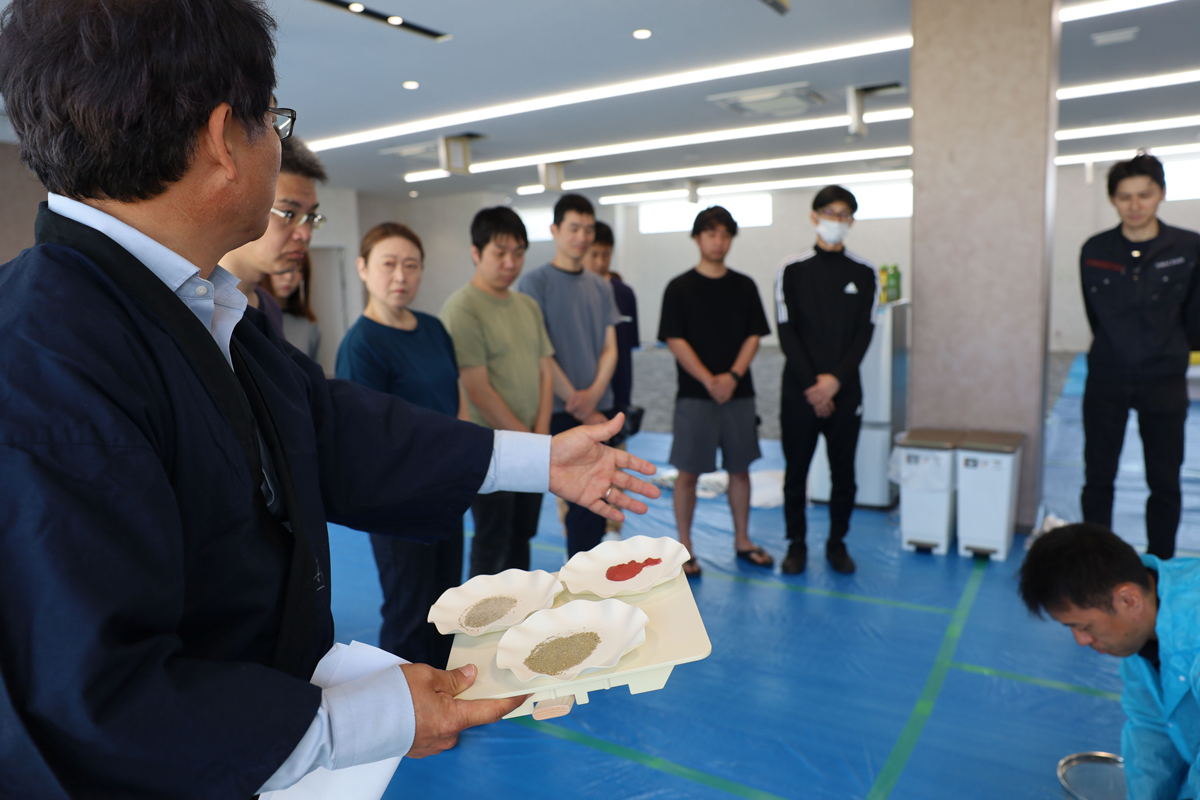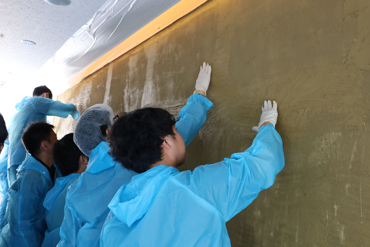 職員が自ら土を塗る、土壁ワークショップを開催