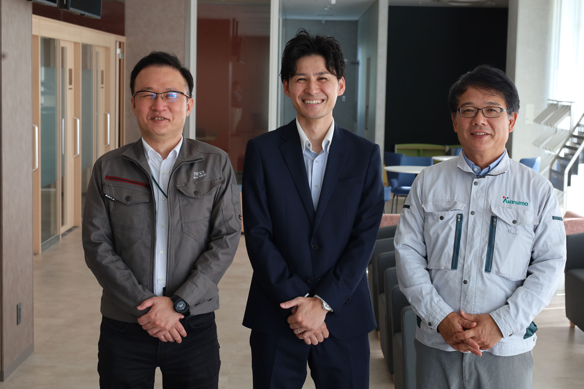 本プロジェクトに携わった、事業主である東海労働金庫 原佑作さん、設計を担当した株式会社玉井設計 安藤裕太さん、施工を担当した淺沼組名古屋支店 山田幸一の3名より、それぞれの視点より今回の取り組みに関するコメントをいただきました。