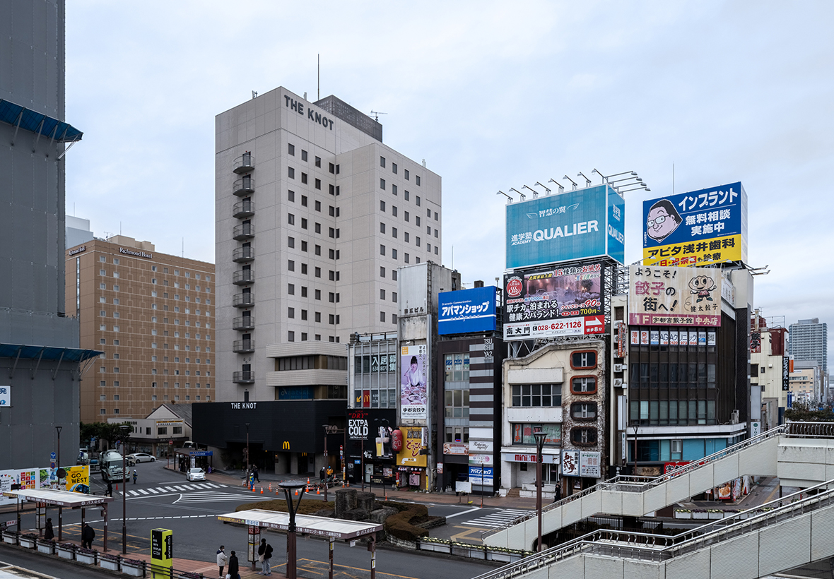 宇都宮駅前に建つ1987年竣工の旧チサンホテル宇都宮を、既存建物を活かした1棟全体の改修を行い、2026年1月に「THE KNOT UTSUNOMIYA」としてリニューアルオープンしました。淺沼組は外壁の補修や、客室を含む全フロアの内装解体と設備機器を更新。さらに、工事の過程において関係者間で対話を重ねながら、2階部分に環境配慮の視点を取り入れた内装仕上げを施しています。