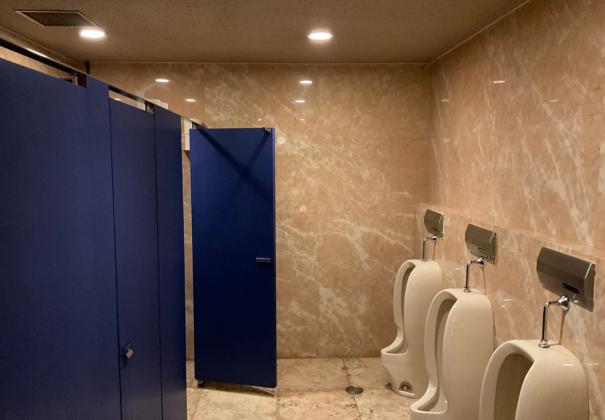 また共用部のトイレでは、既存タイルを撤去せず、目地をモルタルで埋めた上から左官を施すことで、廃材の発生を抑えています。素材の選定だけでなく、施工方法を見直すことで、できるだけ廃棄を出さない工夫を実践しています。