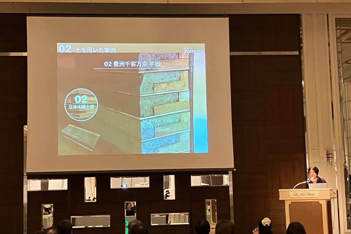 受賞に合わせて、淺沼組技術研究所の建築材料研究グループより、建設発生土を循環利用し、建材として空間に再活用する淺沼組独自の開発事例について紹介。建築と土木が連携して展示ブースを設け、多くの来場者の方々にご覧いただきました。「土を未来へつなぐための共創」を掲げる「土サミット」の設立趣旨に共感し、さまざまな分野で土の活用に取り組む人々と想いを共有する良い機会となりました。